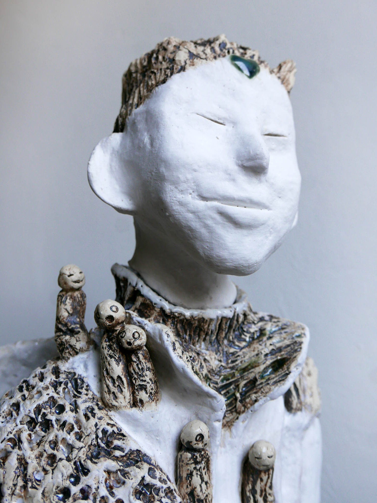 Avec cette sculpture j'ai voulu exprimer mon admiration et mon respect pour Vindy et son équipe. Ce sont toutes des femmes fortes avec un très grand cœur pour les plus petits qui sont toujours accueilli avec un grand sourire bienveillant. Les enfants se sentent protégés dans les doux plis des vêtements de leurs anges gardiens. Sur et sous leurs ailes, elles emportent les enfants vers des aventures merveilleuses, stimulantes et éducatives.